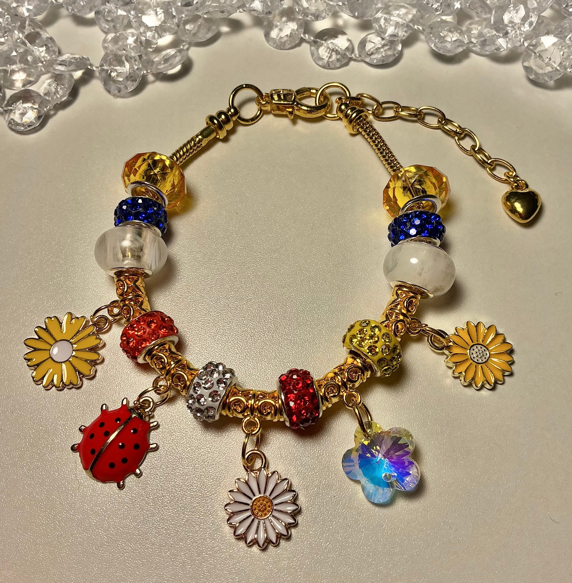 Bright and eye-catching with a refined touch, this beaded fluid chain bracelet features a smooth gold-tone chain accented with colorful beads and playful charm details. Lightweight and comfortable, it’s perfect for stacking or adding a stylish pop of color to any outfit.